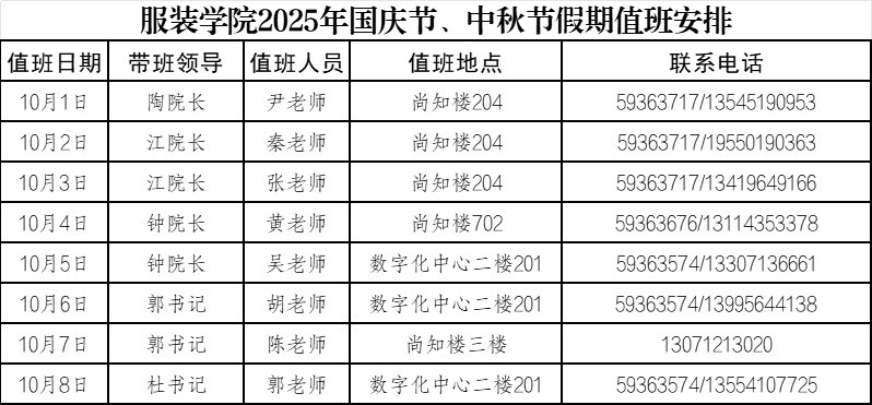 雷火电子竞技平台2025年国庆节、中秋节假期值班安排