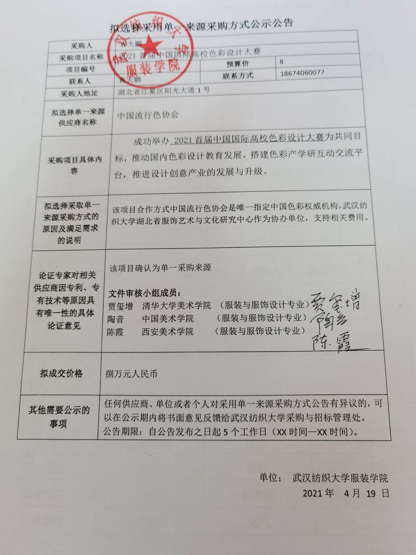 单一来源采购公示