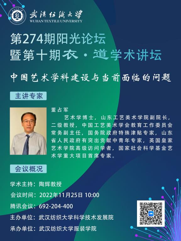 讲座预告:第274期阳光论坛暨雷火电子竞技平台第十期衣·道学术论坛