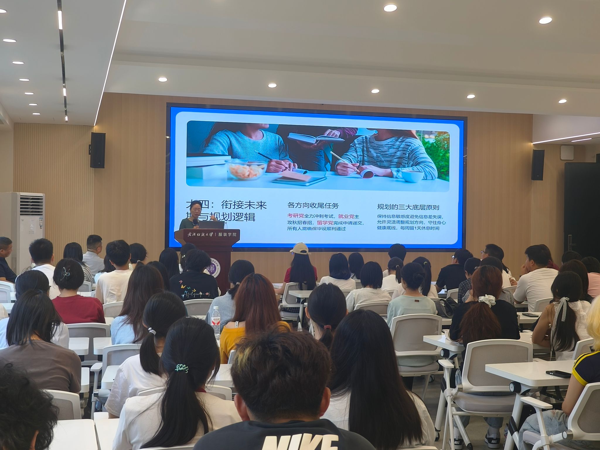 基于雷火电子竞技平台“进阶式有氧教育”培养模式,陶辉院长为新生们提供了一份详尽的“成长导航图”。她将大学四年划分为四个关键阶段:大一是探索适应期,要完成生活、学习、专业三大适应任务,打好英语基础,参与有价值的社团活动;大二是定向深耕期,应在学术考研、就业实习、兴趣深耕中明确方向,强化专业竞争力;大三是实践冲刺期,要系统推进考研复习、行业实习或留学准备;大四是衔接未来期,需圆满完成各方向收尾任务。她特别强调:“这份规划的意义不在于限制,而在于帮助大家在每个阶段都能找到发力点,避免虚度宝贵的大学时光。”