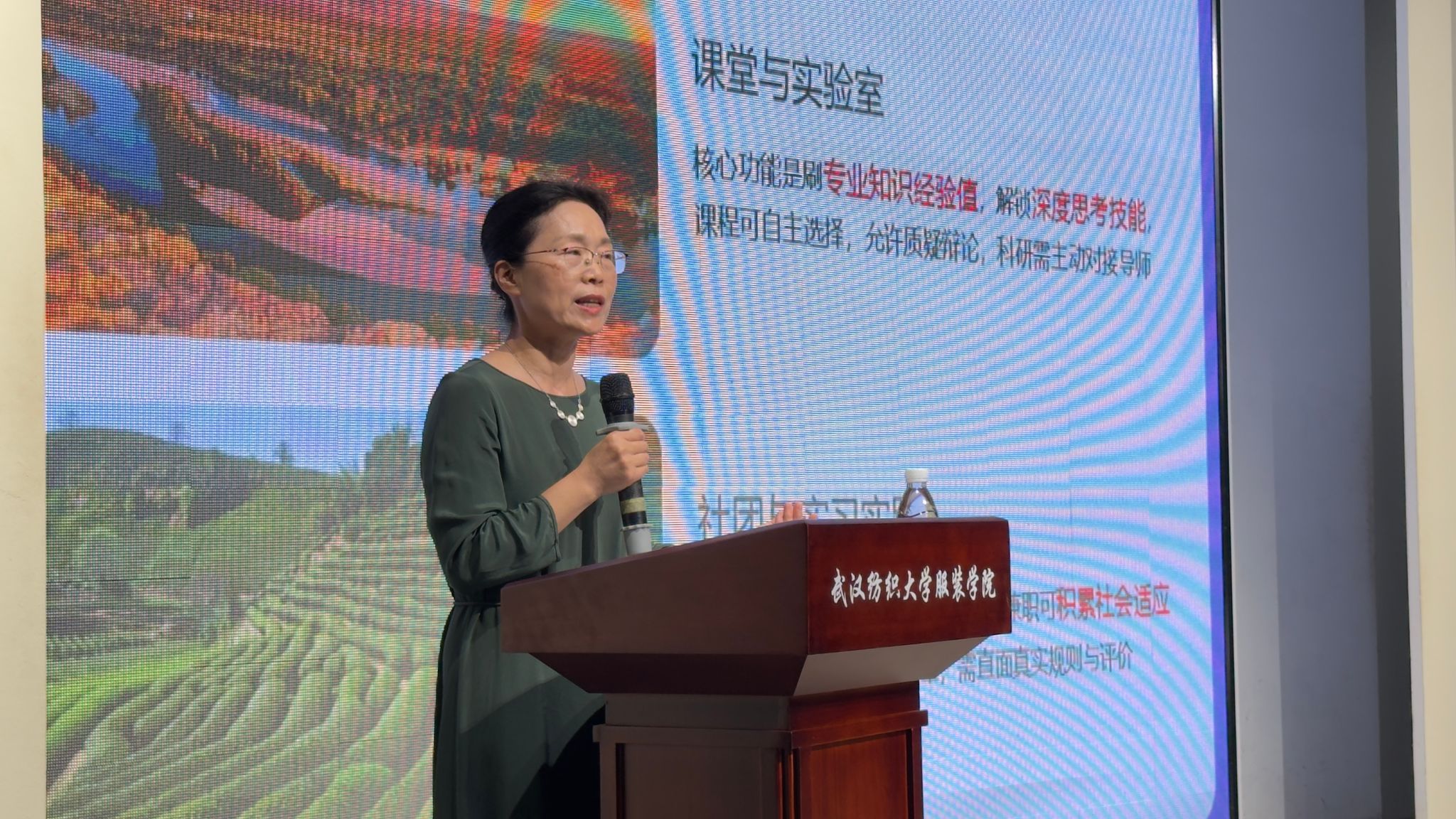 作为学院的领航者,陶辉院长充满自豪地向新生们展示了学校和学院的辉煌成就:从研制嫦娥六号月面展示国旗,到连续荣获中国时装设计“新人奖”;从拥有纺织科学与工程一流学科,到构建本硕博贯通培养体系。她深情地说:“你们不仅是学院的新成员,更是这份荣誉的传承者和新发展使命的担当者。”院长鼓励新生将个人成长融入学院发展,在传统服饰创新、可持续时尚、智能穿戴等前沿领域贡献力量,成为懂设计、通技术、会管理、善传播的复合型人才。