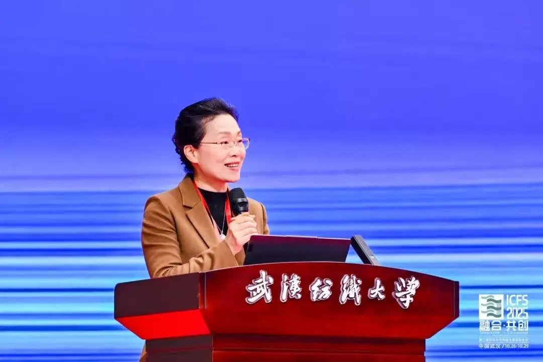 Liang Wei, Director of the International Cooperation and Exchange Office of the Department of Education of Hubei Province, delivered a speech at the opening ceremony, extending warm congratulations on the convening of the international conference. She pointed out that against the backdrop of global efforts to address climate change and resource constraints, promoting the green, intelligent, and global transformation of the fashion industry is of great significance. The conference's theme accurately responds to the needs of industrial transformation, highlighting the crucial role of technology and culture as dual drivers of sustainable development. Liang Wei emphasized that textiles and apparel are key pillar industries in Hubei, and Wuhan Textile University, as a "Double- First Class Initiative" candidate university in the province, has achieved significant results in the talents cultivation and sustainable research. The Department of Education of Hubei Province will continue to support the university in deepening industry-academia-research collaboration, strengthening discipline construction, and hopes that the conference will serve as an opportunity to build a cross-cultural collaboration platform, gather global wisdom, jointly explore innovative paths for sustainable fashion development, and inject new vitality into industrial and regional development.