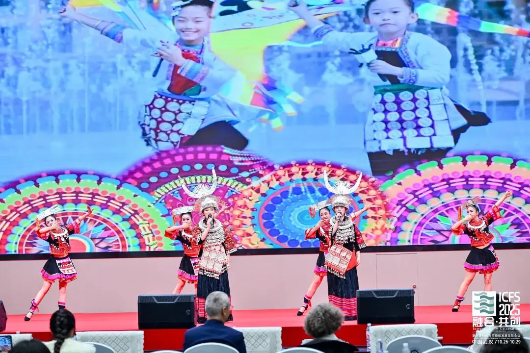 After the keynote forum, artists from Qiandongnan Prefecture in Guizhou Province presented a cultural feast for the attendees with intangible cultural heritage performances such as Dong Ethnic Grand Choirs and Pipa singing. Yang Guoxiang, Deputy Director of the Qiandongnan Prefecture Culture, Sports, Radio, Television, and Tourism Bureau, delivered a speech, systematically introducing the rich intangible cultural heritage of Qiandongnan to global scholars and extending sincere wishes for the successful convening of the conference, demonstrating the deep integration of cultural heritage and the theme of sustainable fashion development.