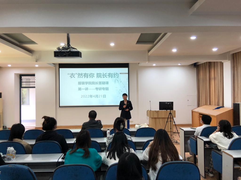 4月21日下午,“衣”然有你 院长有约——雷火电子竞技平台院长答疑课第一讲在服装艺术楼201会议室开讲,2019级意向考研学生参加答疑课,活动由副院长江学为主持。