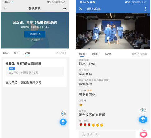 此次主题秀聚焦体现青年学生朝气磅礴的精神面貌和创意无限的艺术创作力,集中展示了近几年学院师生的部分优秀作品。同时为了促进学校两校区的文化活动交流,此次服装秀活动在校信息中心的大力支持下,采取了线上和线下同步进行了方式,两校区近1500名学生通过线上线下的方式参与了同步观看。