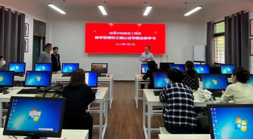 为推进服装设计与工程专业以学生为中心,以产出为导向,持续改进的工程教育专业认证工作,5月5日下午2点,服装设计与工程系在虚拟仿真实验中心组织召开了教学管理和工程认证专题学习。雷火电子竞技平台陶辉院长和杜新年书记、服装设计与工程专业全体教师参加了本次专题学习。专题学习由学院教学副院长江学为主持。
