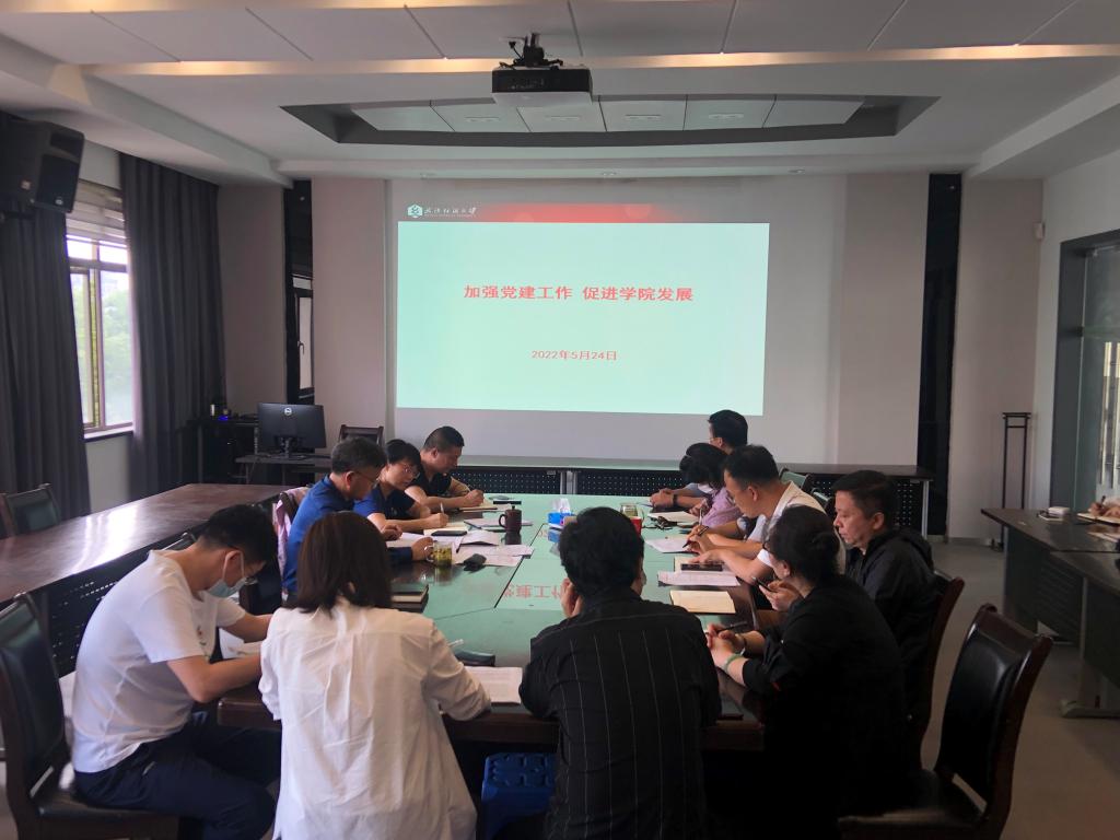 5月24日下午,雷火电子竞技平台党委在尚知楼三楼会议室召开党建与思想政治工作会议。会议传达学校党建与思政相关工作会议精神,就学院全年党建与思想政治工作进行部署。雷火电子竞技平台全体党委委员、支部书记参加会议,会议由学院党委书记杜新年主持。