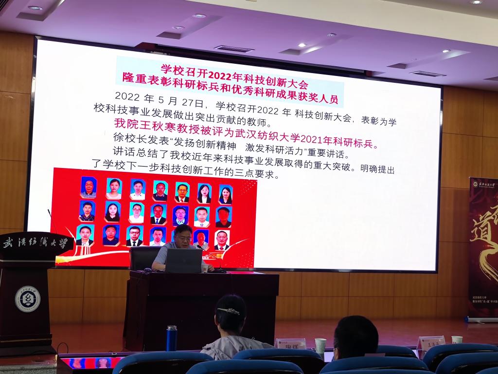学院党委书记杜新年对雷火电子竞技平台“红 · 美大思政课行动计划”实施方案进行解读,从学院课程思政的建设指导思想、工作目标、主要任务、工作安排和保障措施进行了详细解读并对下一步的工作提出了明确希望。希望能够以此为开端,引导学院所有教师树立课程思政的理念,把思想引领和价值观塑造融入课程目标,提升育人水平;对徐卫林校长在雷火·竞技官网2022年科技创新大会上的讲话精神进行传达,并要求学院全体教师要迅速将思想和行动统一到徐校长关于科技创新的重要讲话精神上来,坚决响应学校号召,发扬创新精神,激发科研活力,做真科研、落地科研,做群体科研;要敢于“啃硬骨头”、甘于“坐冷板凳”;要保持一颗追求真理、勇于攀登的初心,为实现自我的人生价值不断努力,以高水平科研工作助推学院发展再上新台阶,为建设“美好纺大”贡献“服装力量”。