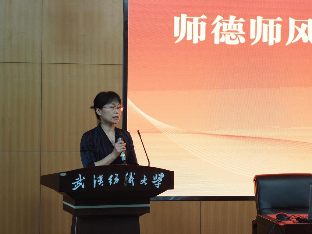 学院院长陶辉教授在主持讲话中指出,各位老师要全面加强学习,全面落实相关工作要求,学院也将完善师德师风与课程思政建设工作体制机制,落实师德师风第一标准,着力建设政治素质过硬、业务能力精湛、育人水平高超的高素质教师队伍,全面提升学院人才培养质量,助力“美好纺大”建设。