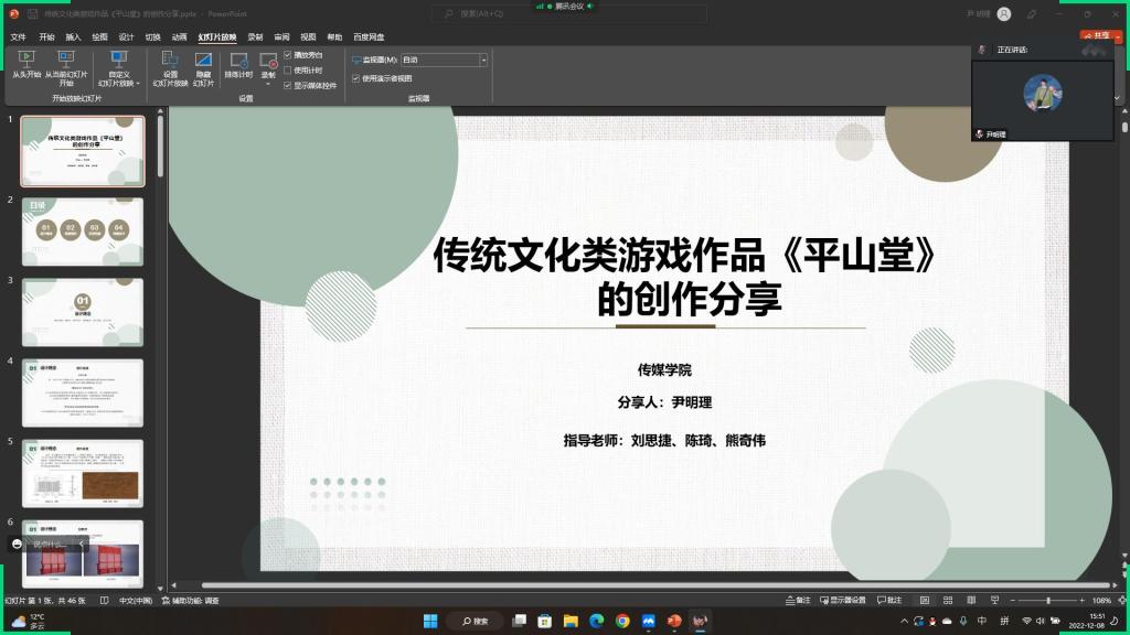 传媒学院尹明理同学就传统文化类游戏作品《平山堂》的创作分享,传统文化类游戏作品《平山堂》的创作分享是一个关于宋代《营造法式》古籍的虚拟可视化复原与展示的构件拼接游戏。是基于尺寸和二维图样信息的三维复原以及拼接构件的游戏化形式展示《营造法式》小木作“阑槛钩窗”的内容。