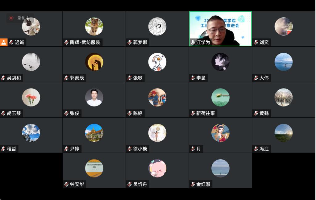 2023年1月15日下午,雷火电子竞技平台组织了工程专业认证线上推进会,学院杜新年书记,陶辉院长,江学为副院长、郭泰辰副书记、服装设计与工程专业全体教师和相关人员参加了会议,会议由陶辉院长主持。