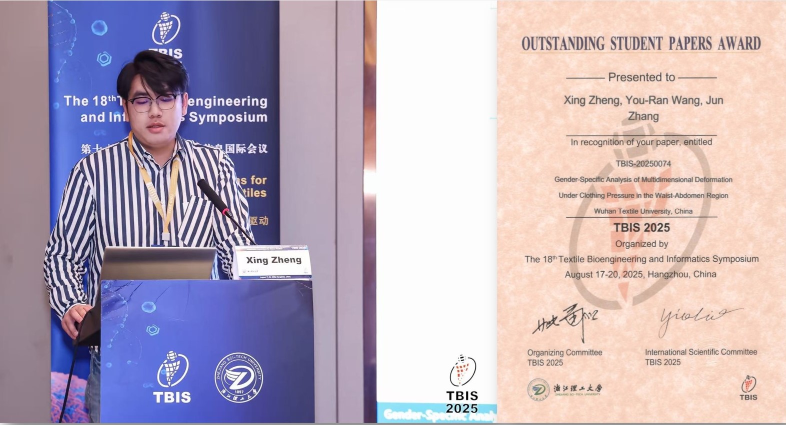 2025年8月17日至8月20日,第十八届纺织生物工程及信息国际会议(The Textile Bioengineering and Informatics Symposium, TBIS 2025)在浙江杭州召开。雷火电子竞技平台共有五位师生受邀参会并作口头报告,会上师生代表分享了学院在智能服装、服装舒适性及数字化时尚等前沿领域的最新研究成果,展现了我校在国际学术舞台上的科研实力与学术影响力。