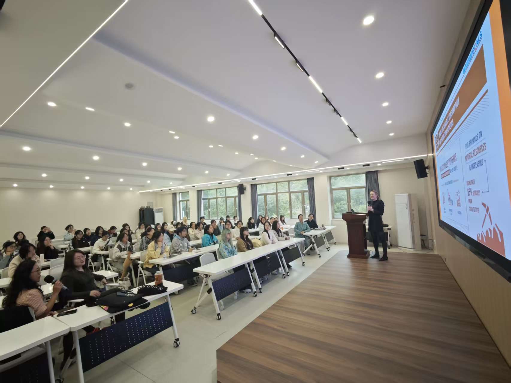 工作坊伊始,Paysy Perry教授以其在可持续时尚与循环经济领域的研究为基础,系统阐述了全球范围内循环时尚的多种实现路径。这些方法均基于循环经济和联合国可持续发展目标(SDGs)的核心原则,强调在设计、生产与消费各环节中实现资源的高效利用与再生。她指出,当下时尚产业正经历着从“快时尚(Fast Fashion)”向“慢时尚(Slow Fashion)”的理念转变,而负责任的消费与生产是推动可持续发展的关键所在。