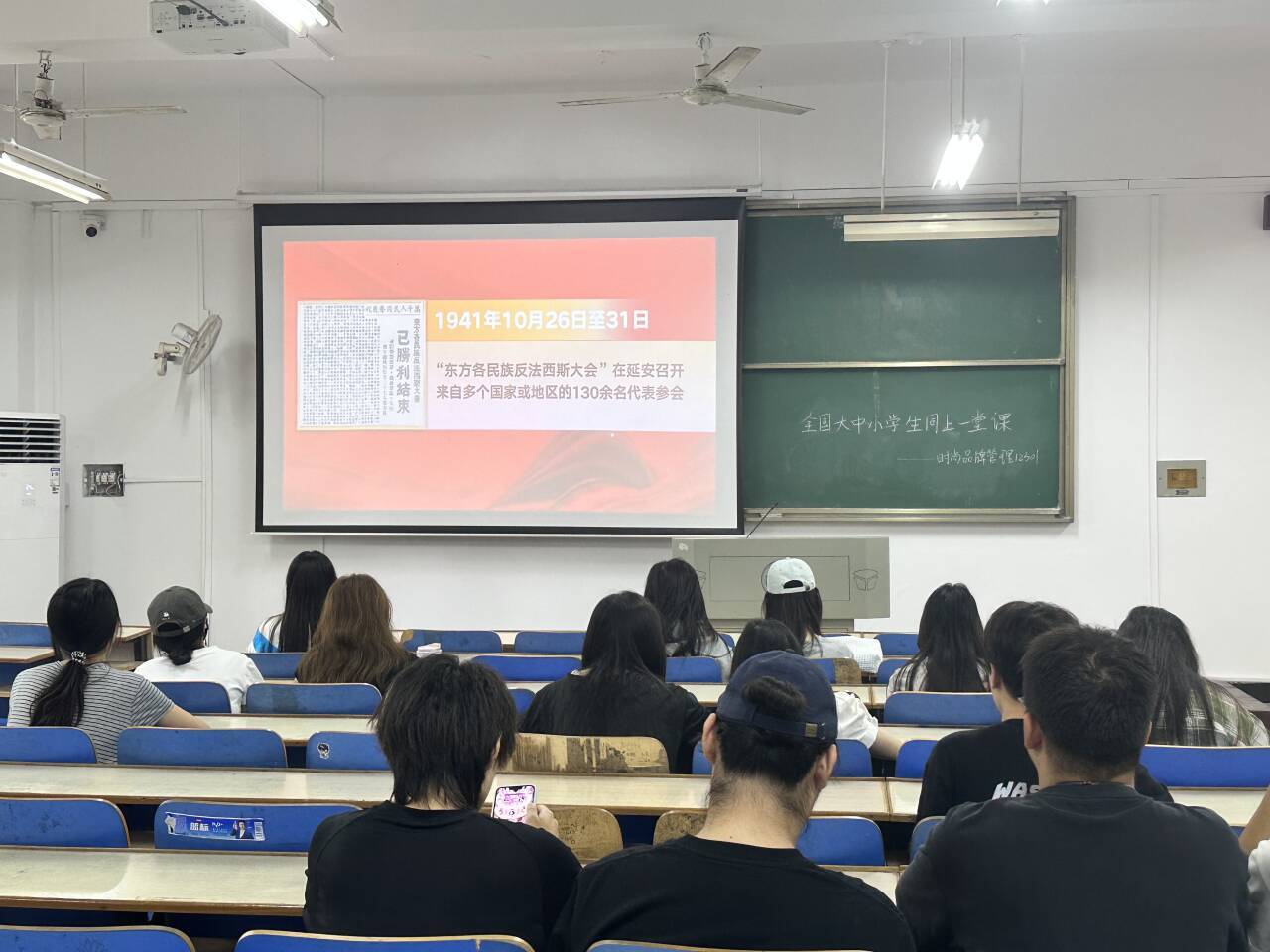 通过观看学习此次思政大课后,我心潮澎湃,课上重现的抗战历史、先辈们浴血奋战的事迹,让我深刻铭记“9·18”的警钟与民族苦难,我明白,青年一代是国家的未来、民族的希望,肩负着传承和践行大国担当的重任。作为站在百年未有之大变局到青年,我们既要以史为鉴,珍惜当下和平,更是要以榜样为指引,从抗战历史中汲取力量,担当起传承的重任,在学习中锤炼本领,用实际行动守护和平,让爱国情怀融入青春奋斗的每一步。