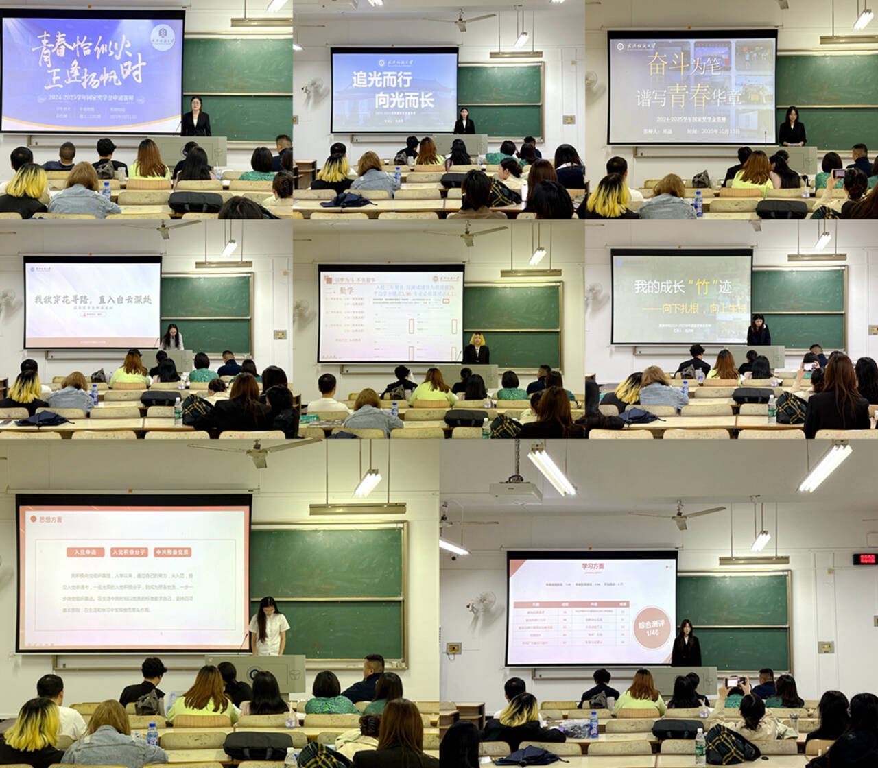 答辩环节中,14名候选人依次进行5分钟PPT展示汇报。他们以饱满的精神状态,用详实的数据与生动的事例展现成长轨迹;他们以扎实的学业基础、突出的科研成果和多样的实践经历,彰显了新时代大学生的责任担当。