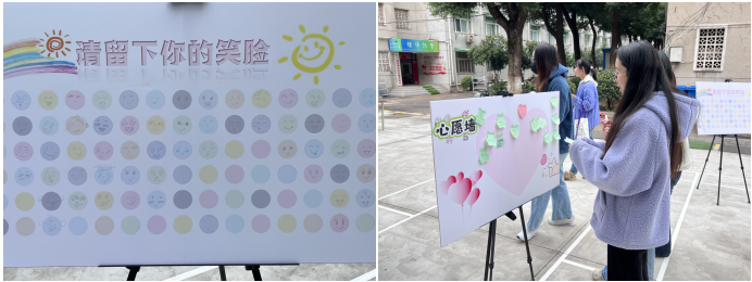 活动内容包括“共绘笑脸墙”、“心愿墙”、“心理拼图”、“蒙眼乒乓球挑战”、“纸杯金字塔”和“一圈到底”等环节。在“共绘笑脸墙”区域,同学们用画笔勾勒出属于自己的专属笑脸,在色彩与创意中实现情绪的表达与共鸣;“心愿墙”前,同学们认真书写个人目标与情感期待,将心愿贴满展板,形成一道温暖的情感风景线。