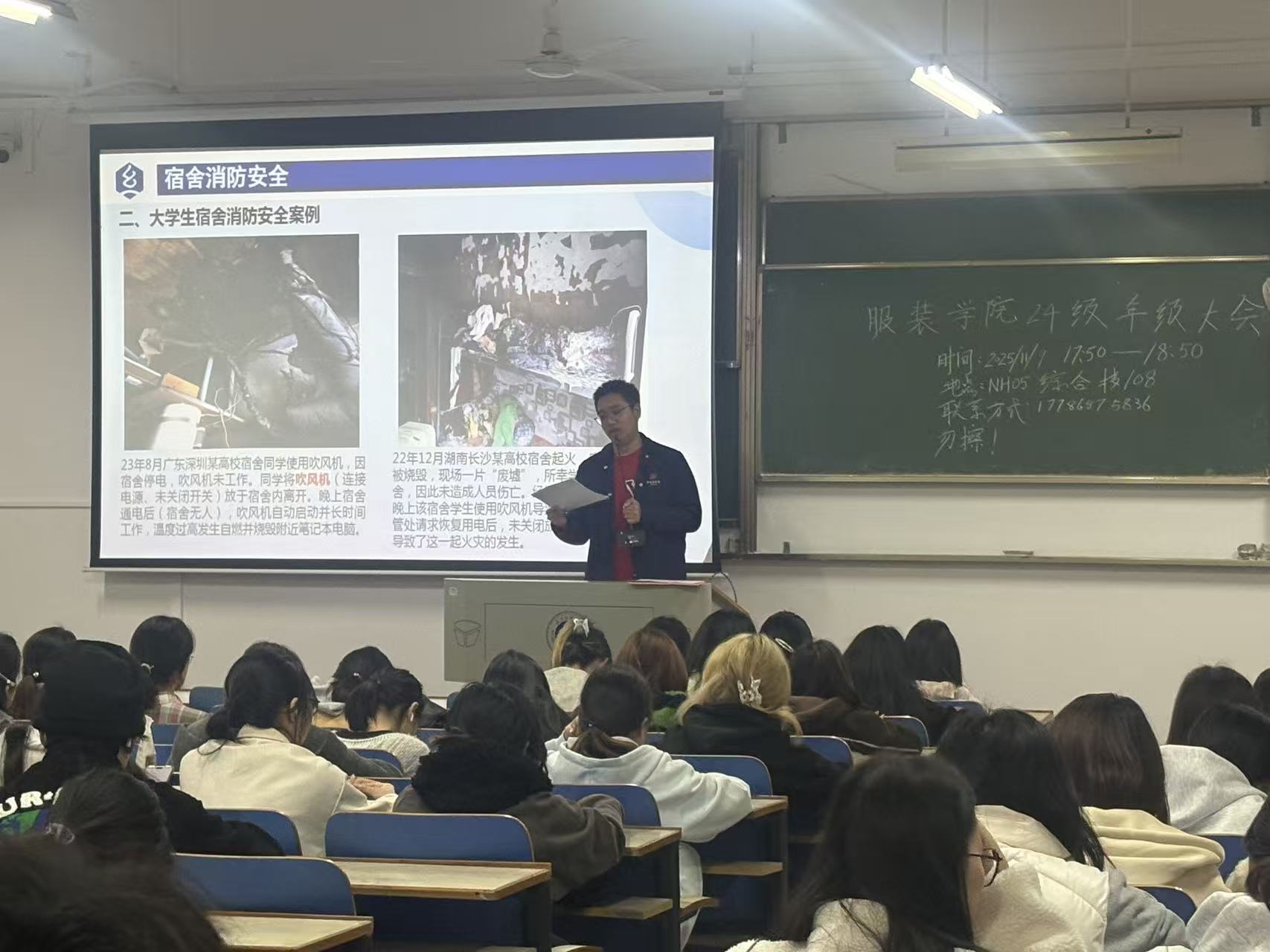本周晚班会聚焦消防安全教育,各班通过专题讲解、案例剖析、互动交流等形式,组织学生系统学习消防安全相关法律法规,结合阳光校区一寝室火灾真实警示案例,深入分析火灾成因与危害,引导学生深刻汲取教训;同时,细致解读宿舍消防安全“十戒”具体要求,明确禁止使用大功率电器、私拉乱接电线等红线。各年级也具体通报了10月份院公检不合格寝室,辅导员、班主任现场重申整改标准,督促寝室长牵头对照宿舍管理细则逐项自查自纠,确保当日整改到位。