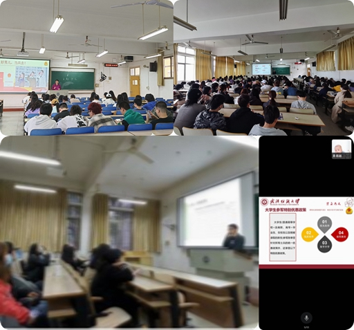 2023年秋季征兵已在全国开展,雷火电子竞技平台高度重视征兵宣传工作,继承办南湖校区的宣传活动后,各年级辅导员在4月9日通过主讲主题班会、组织班级讨论等方式对全体学生再次进行了参军入伍政策宣讲。